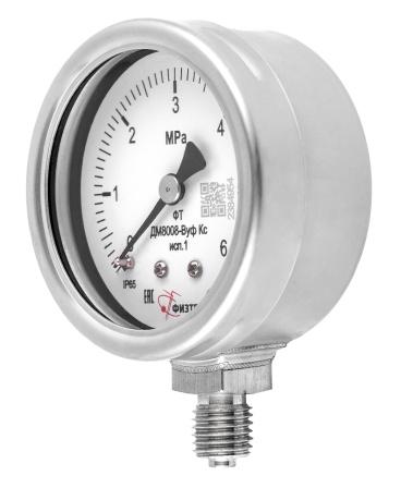 Вакуумметры, мановакуумметры, манометры коррозионностойкие ДВ8008-ВУф Кс, ДА8008-ВУф Кс, ДМ8008-ВУф Кс исп 1 Без заполнения