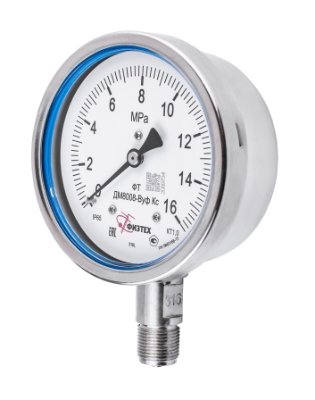 Вакуумметры, мановакуумметры, манометры коррозионностойкие ДВ8008-ВУф Кс, ДА8008-ВУф Кс, ДМ8008-ВУф Кс Без заполнения Б110