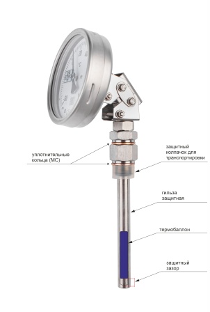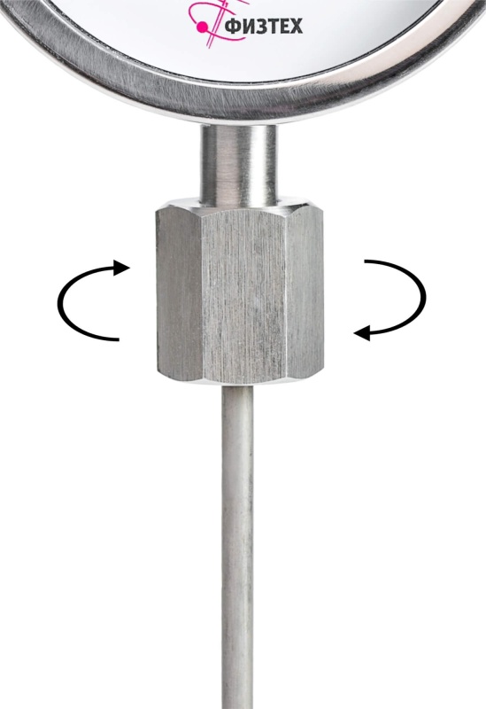 ВАЖНО! Корпус и шток (термобаллон) коррозионностойких термометров изготавливаются из нержавеющей стали, тип присоединения на штоке - свободная внутренняя резьба ("накидная гайка"). При необходимости термометр комплектуется гильзой из нержавеющей стали с внешней резьбой присоединения к прибору.