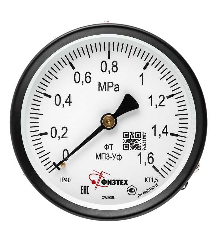 ХарактеристикиВакуумметры, мановакуумметры, манометры общетехнические ВП3-Уф, МВП3-Уф, МП3-Уф предназначены для измерения избыточного и/или вакуумметрического давления некристаллизующихся, неагрессивных по отношению к медным сплавам сред (жидкостей, пара, газов).Номинальный диаметр корпуса100 ммКласс точности- 1,5 (базовый)