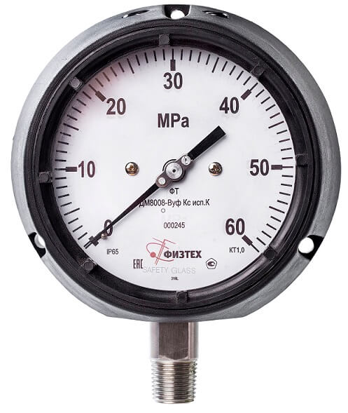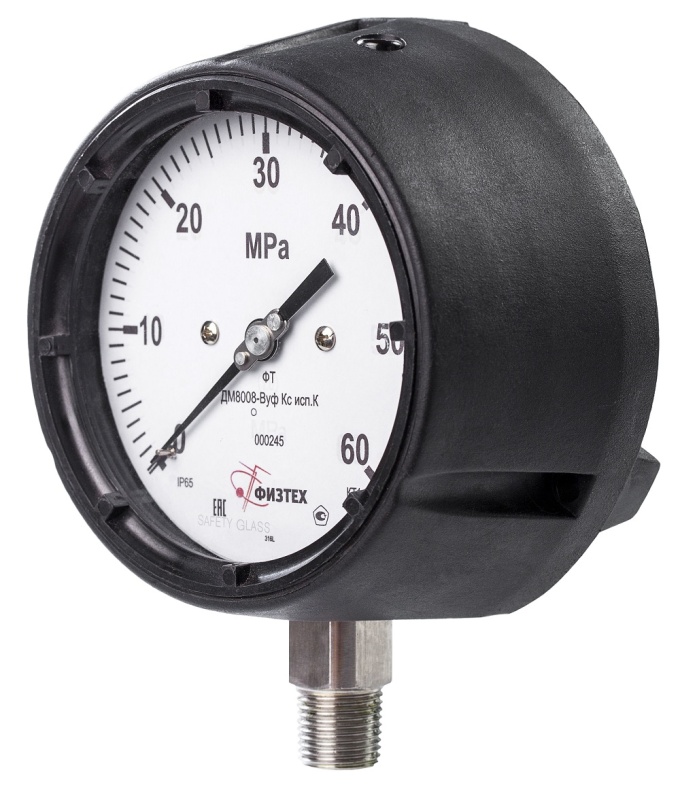 - от 16 до 60 МПа многовитковаяШтуцер, трибко-секторный механизмнержавеющая стальЦиферблат- алюминиевый сплав, окрашенный в белый цвет (базовый)