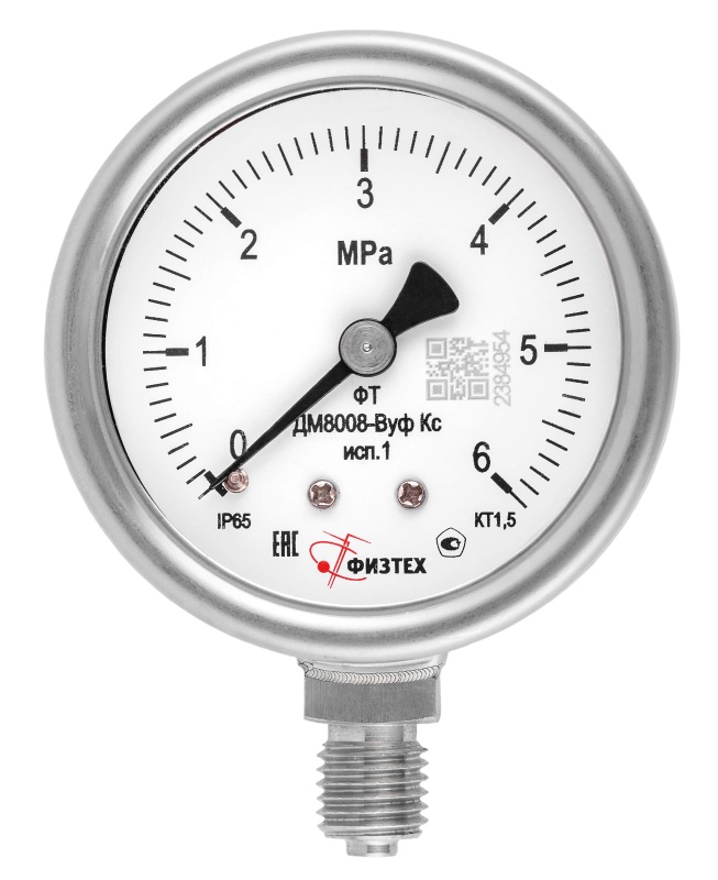 Вакуумметры, мановакуумметры, манометры коррозионностойкие ДВ8008-ВУф Кс, ДА8008-ВУф Кс, ДМ8008-ВУф Кс исп 1 Без заполнения