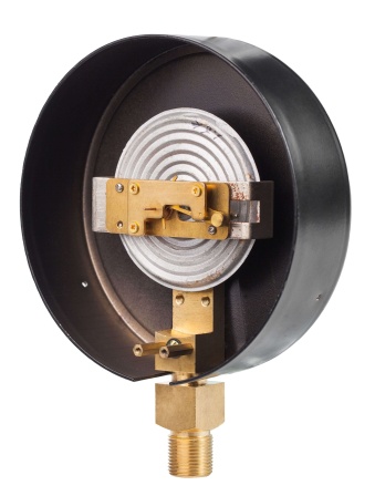 - кратковременная нагрузка - 100% шкалыСредний срок службы10 летМасса, не более1,2 кгМатериал корпусасталь, окрашенная в черный цветОбечайкасталь, окрашенная в черный цвет, крепление винтамиСтеклотехническоеМембранная коробкамедный сплавШтуцер, трибко-секторный механизммедный сплавЦиферблаталюминиевый сплав, окрашенный в белый цветИнструкцииВАЖНО! Принцип действия манометров низкого давления основан на зависимости деформации чувствительного элемента от измеряемого давления. В качестве чувствительного элемента используется мембранная коробка. -