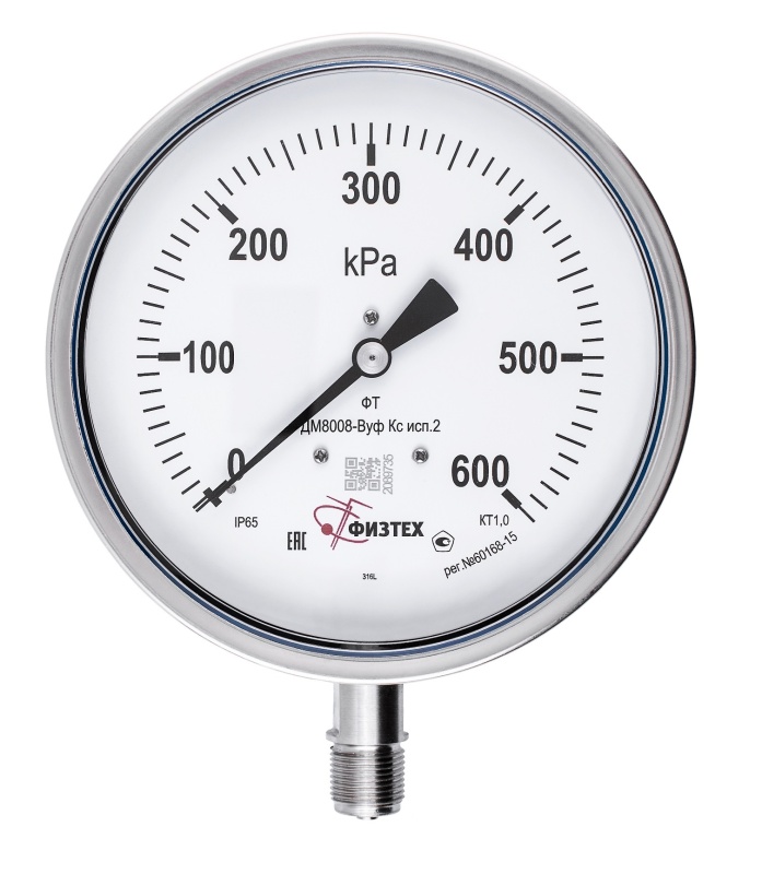 Вакуумметры, мановакуумметры, манометры коррозионностойкие ДВ8008-ВУф Кс, ДА8008-ВУф Кс, ДМ8008-ВУф Кс исп 2 Без заполнения Б160
