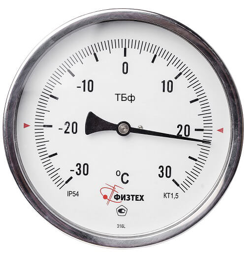ХарактеристикиТермометры биметаллические коррозионностойкие ТБф-221 предназначены для измерения температуры жидких и газообразных агрессивных к медным сплавам сред и отображения измеренных значений на показывающем устройстве.